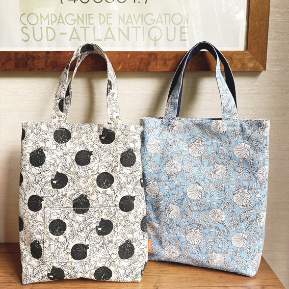 | 新作柄と人気柄で一点ずつ手作りした使いやすいバッグや可愛いポーチ。持っていると楽しくなるアイテムを揃えてお待ちしております |