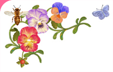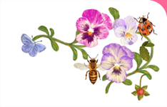 春の庭写実的な花や蜜蜂を主役に春の庭の生命の 連鎖を描きました 植物たちがつながり ハート模様が浮かび あがる柄です |